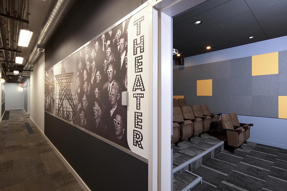 Our private stadium-seated movie theater with 110″ 4K projection screen and Dolby Surround. Group movie nights and calendar app to reserve theater upon request.