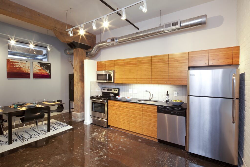 There’s a lot to love from our original hardwood floors & exposed wood columns to our bamboo cabinets and Richlite paper-stone countertops.